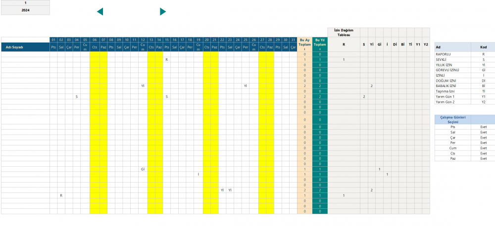 2024 Yılı, öğretmenler için Ek Ders KBS Ve Devamsızlık Defteri V4Personel Devam Devamsızlık Çizelgesi