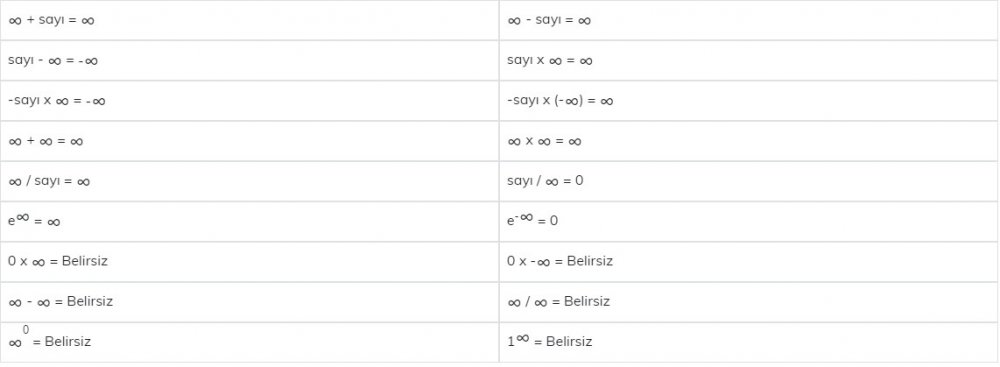 değerine ulaşırız. Gördüğünüz gibi 1∞ için 2 farklı sonuca ulaştık. İşte bu nedenle 1∞ belirsizdir.