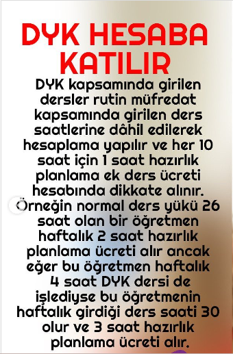 DYK DERSLERİ HAZIRLIK VE PLANLAMA EK DERS ÜCRETİ KAPSAMINDA DİKKATE ALINIR MI?