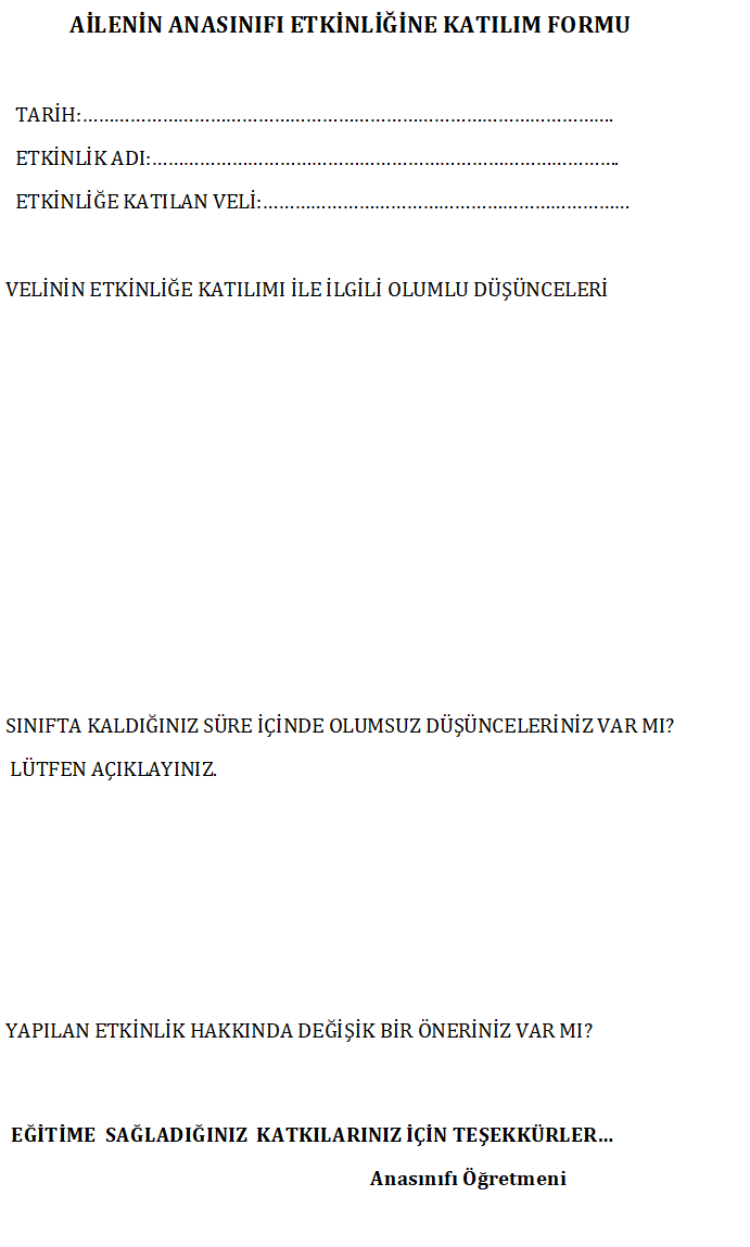 Okul öncesi için veli memnuniyet formu. Okul öncesinde veli katılım memnuniyetini ölçmek için form.