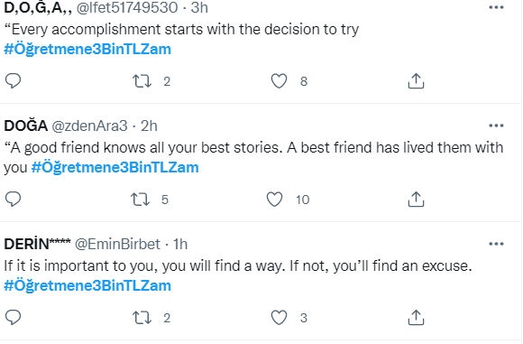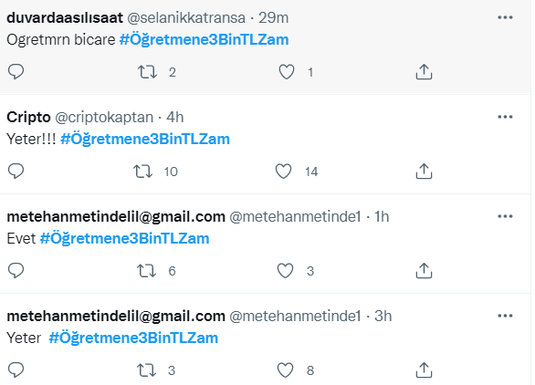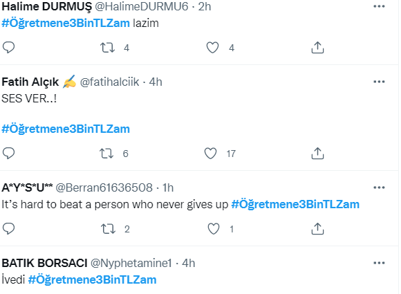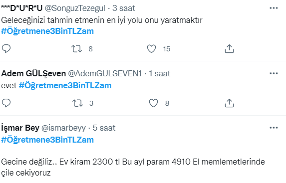 Bugün Cumhurbaşkanı Erdoğan, öğretmenlere 1000 TL'lik maaş zammı yapılacağını duyurdu. Erdoğan'ın yaptığı zam haberinin ardından, binlerce öğretmen sosyal medya üzerinden #Öğretmene3BinTLZam hashtagı açtı.