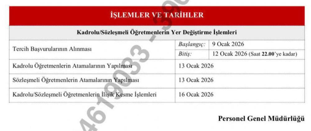 Yer değiştirme sonuçları 13 Ocak 2026 tarihinde ilan edilecek.