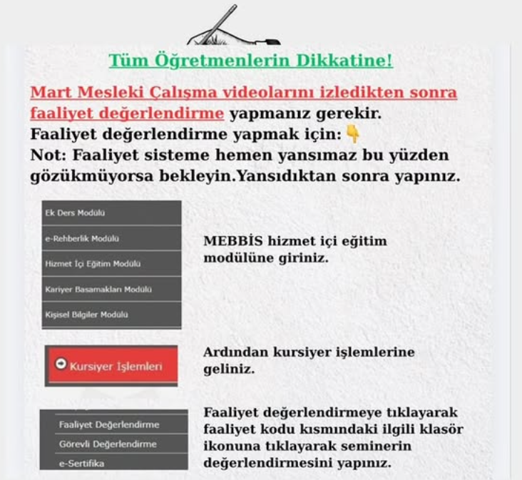 Mart Mesleki Çalışma videolarını izledikten sonra faaliyet değerlendirme yapmanız gerekir.