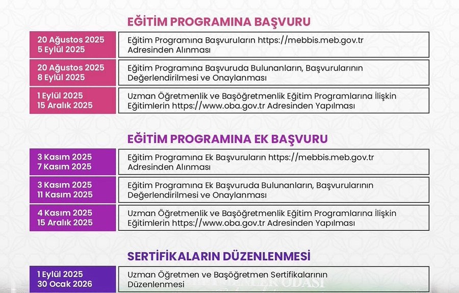 2025 Yılı Uzman Öğretmenlik ve Başöğretmenlik Takvimi Yayımlandı