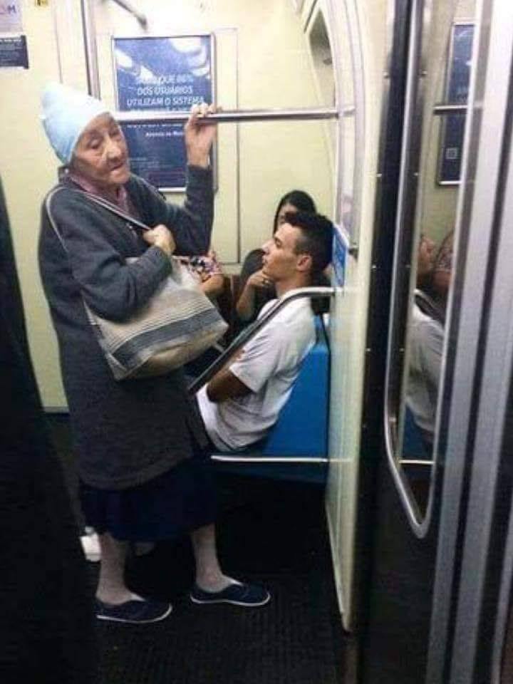 Otobüste (fotoğraftaki gibi) yanında duran yaşlı bir teyzeye yer vermeyen bir öğrencimize seslendim: